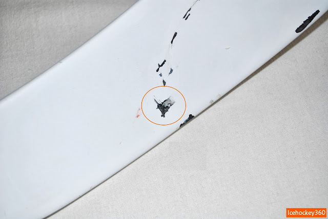Думаю, уместно будет рассказать и о том, что за практически два месяца эксплуатации ССМ Stage 2 на рукоятке почти не образовалось сколов, единственным серьезным повреждением является пробой стенки пера. Не помню как такое произошло, возможно это результат стыка либо наступили коньком. Но на свойствах клюшки данное повреждение никак не сказалось.