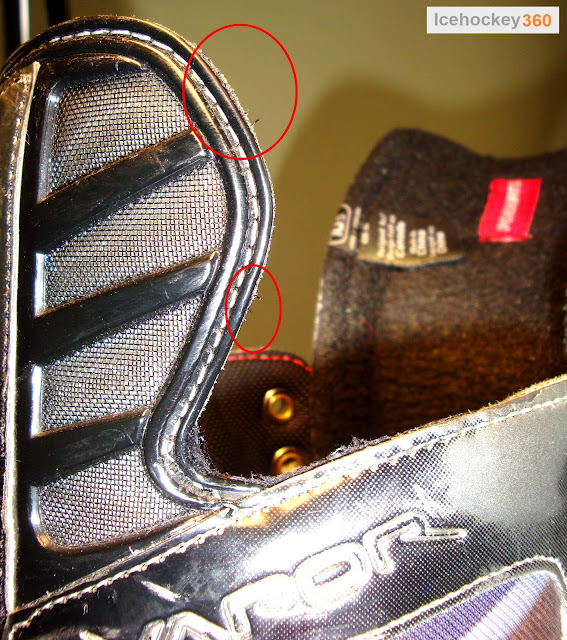 Что касается защиты, то я немного в ней разочаровался. О попадании в носок шайбы я уже писал выше. Броски в боковую поверхность ботинка также оказались очень болезненными и частенько оставались синяки. Не скажу, что они бесполезны в плане защиты, просто я ожидал большего.