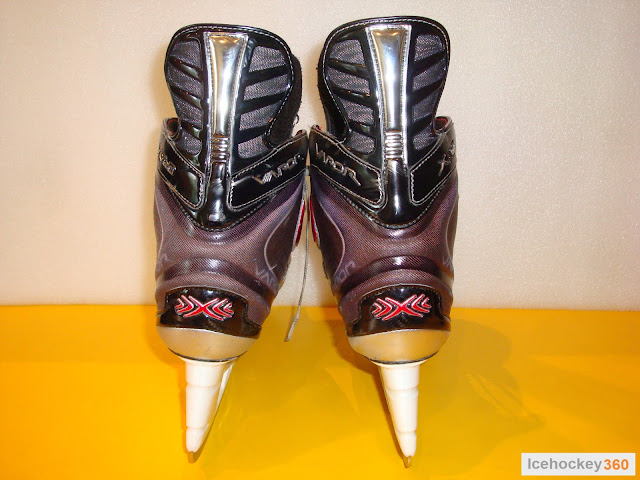 Напомню, Х60 были топовыми коньками в линейке Vapor. Ботинок выполнен из композитных материалов, причем этот материал монолитный, идет с одной стороны ботинка через пятку на другую сторону без разрезов. Эта конструкция придает конькам большую жесткость.