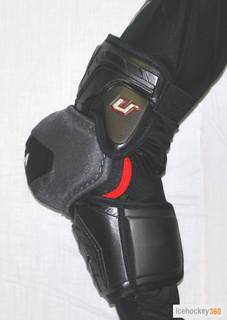 Приятно удивило то, что производителем был пересмотрен механизм крепления налокотников. В U+09 это было одной из основных проблем. Налокотники очень плохо фиксировались на руке и при малейшем контакте с соперником сразу сдергивались вниз. Таким образом однажды я очень сильно ушиб локоть — после борьбы с защитником налокотник в очередной раз сполз вниз и в следующее мгновение меня опрокинул его напарник, в результате я упал на уже незащищенный локоть. Крепление было настолько неудачным, что даже при щелчке на фазе выпрямления нижней руки налокотник немного спускался вниз.