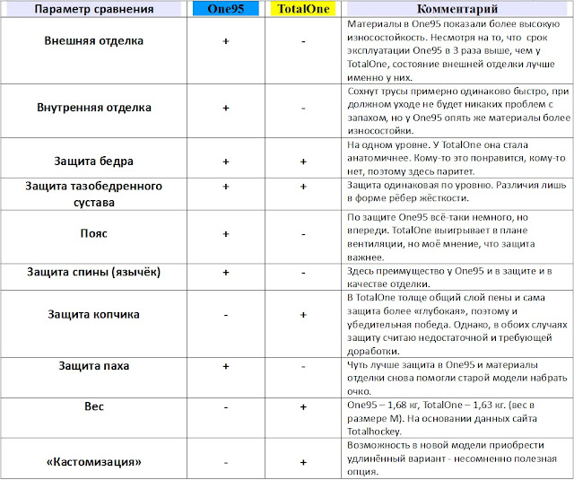 В моём обзоре приняли участие трусы TotalOne в размере L и One95 в размере XXL. Время эксплуатации: TotalOne — около 6 месяцев, One95 — около 1,5 лет. Нагрузка — 2-3 выхода на лёд в неделю.