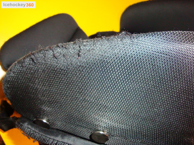 Защита на задней поверхности бедра выполнена из 2-х сегментов тонкой пены с отверстиями: один прямоугольной формы, второй — с закруглением. Внутренняя часть бедра на обоих трусах выполнена из аналогичного материала, из которого в них выполнена полоса, идущая от низа шнуровки и проходящая между ног. Производитель предусмотрел стандартную молнию и липучки, чтобы владелец смог подогнать штанины по объёму. Здесь же хотелось бы вернуться к «болезни» трусов Bauer с липучками. Последствия Вы можете наблюдать на фото ниже. Мне кажется, Bauer надо что-то делать с этим, т.к. иначе как безобразие это назвать нельзя. На One95 я оперативно закруглил острые края лип, что дало неплохие результаты по сравнению с тем, что острые края лип сделали за 6 месяцев с трусами, где их не трогали. Фото не передаёт всех последствий, но, поверьте, всё очень печально.
