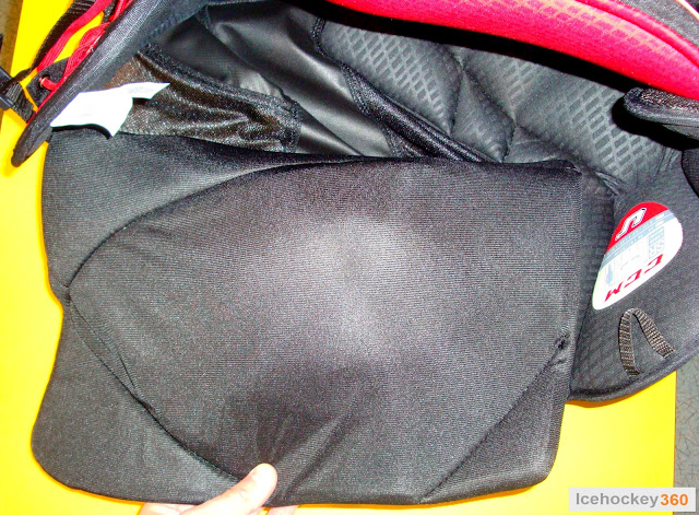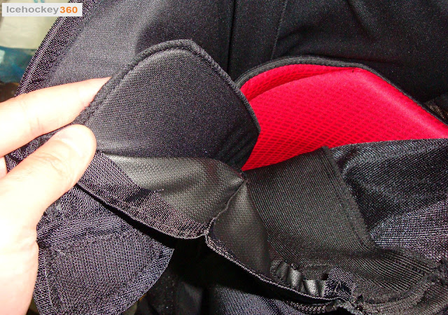 Если говорить об эргономике, то здесь тоже есть к чему придраться. Во-первых, низкий пояс. Он ниже, чем в Х60 и при этом, как я говорил выше, он не полностью жёсткий в отличие от указанной модели Bauer. Во-вторых, массивная защита копчика создаёт лищний объём, из-за чего создается ощущение «памперса». Это присуще и более ранним моделям ССМ, так что для владельцев трусов этого бренда ничего нового. В-третьих, маленькие уголки с поролоном (на фото выше выделены маркером), которые прикрывают ягодицы, топорщатся и через чехол торчат острыми углами. Эту проблему можно решить, если соединить широкой эластичной лентой этот угол с зашитой копчика.