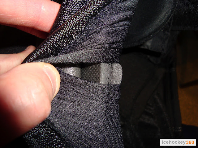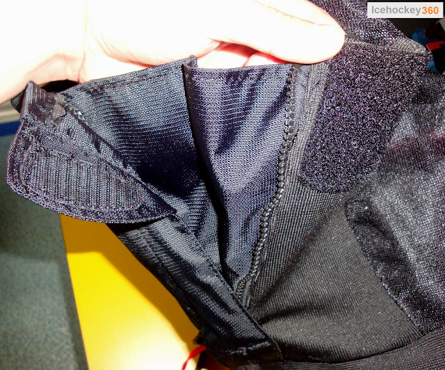 Там же, на внутренней части бедра, есть ставшая привычной молния. В застёгнутом состоянии она закрывается липой закруглённого профиля. Липы понравились, нет никаких острых краёв, которые могли бы повредить трусы при движении, что мы наблюдали в трусах Bauer. Не понравилось то, что при раскрытой молнии на подкладке нет ответной липы, чтобы её зафиксировать. Получается, что при движении она так и будет болтаться в расстегнутом состоянии.